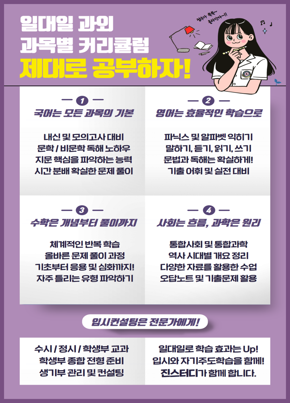 학원을 다니면서 인강을 들을 때는 공부를 하면서도 항상 불안한 마음이 있었는데요. 봉일천과외 선생님과 같이 공부를 하고 난 이후부터는 불안한 마음이 사라졌어요. 이제는 열심히 공부한 만큼 좋은 성적을 받고 싶다는 마음만 가득한데요.